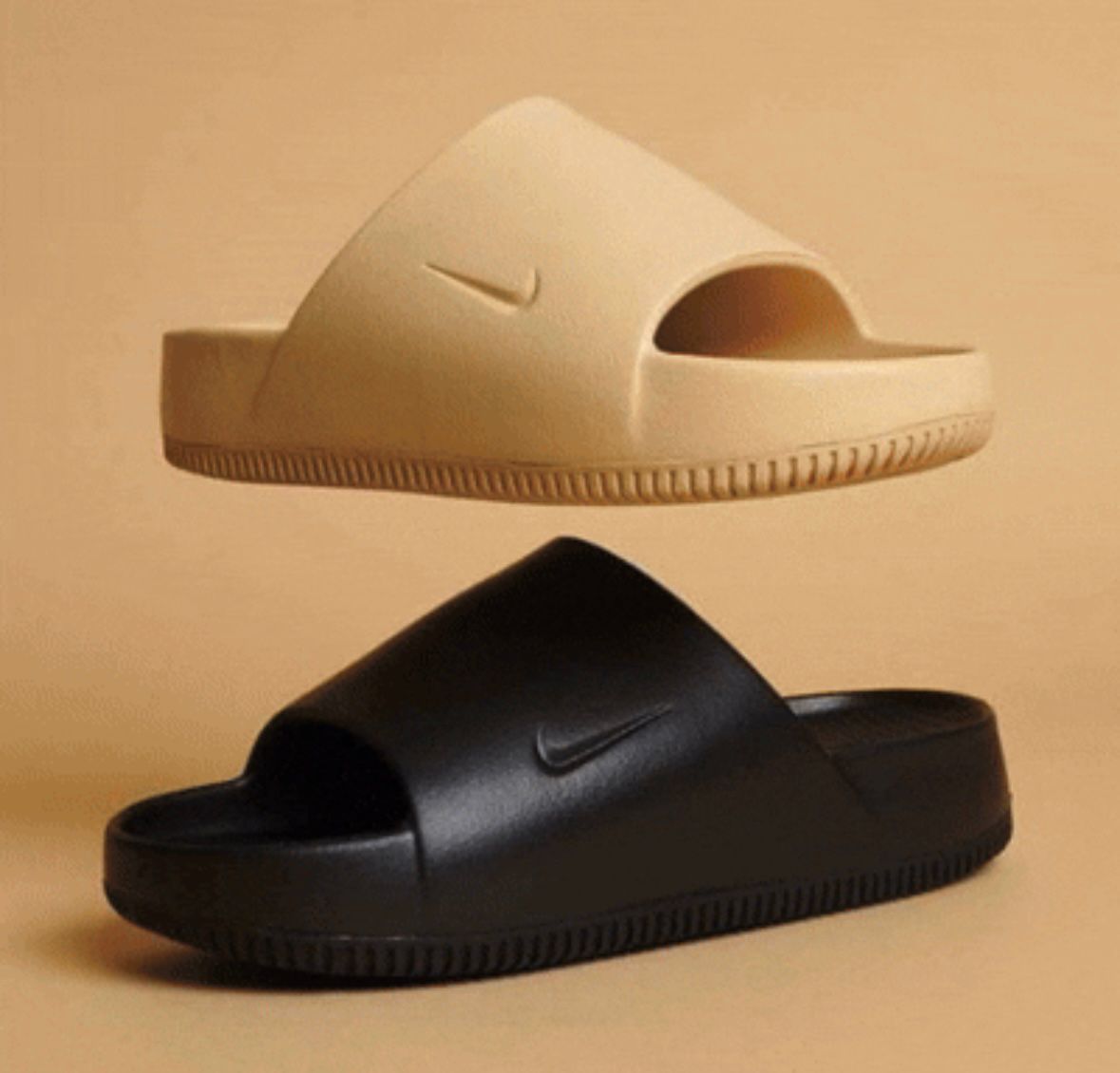 Nike Calm: Las sandalias más cómodas del planeta Imagina caminar sobre las nubes... con las Nike Calm, eso es una realidad. Diseñadas para ofrecer una comodidad absoluta, estas sandalias redefinen el significado de descanso y estilo. ✨ PAGA AL RECIBIR 100% CONFIABLE. (La imagen muestra las sandalias de Nike Calm).